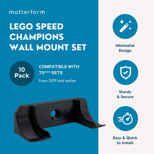 Wall Mount for Lego Speed Champions (10 Pack) | Compatible with Older 75*** Sets (2019 and earlier) | Car Model Display Hanger & Holder